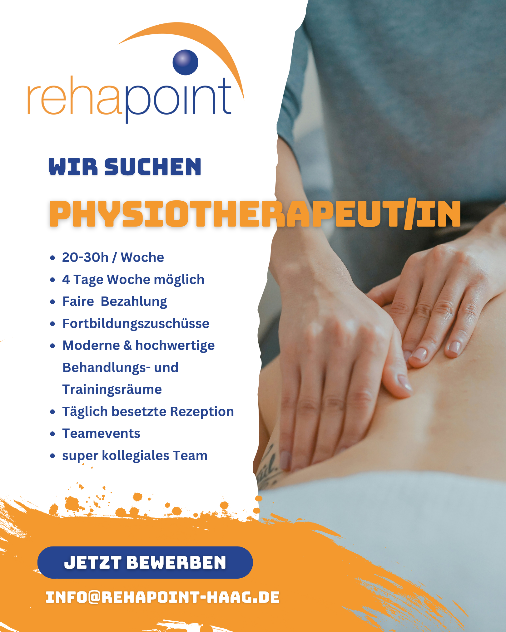 Das rehapoint-Team begrüßt Sie sehr herzlich auf dieser Webseite. Hier stellen wir uns vor, damit Sie sich mit unseren modern ausgestatteten Praxisräumlichkeiten vertraut machen können. Für allgemeine Fragen oder Terminvereinbarungen stehen Ihnen zwei entsprechende Online-Formulare zur Verfügung. Oder Sie rufen uns ganz einfach an. Wir freuen uns über Ihre Kontaktaufnahme, um Ihren Gesundheitsprozess baldmöglichst unterstützen zu können.